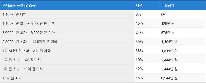 - 산출세액: 과세표준에 “기본세율” 적용(= 이번 글의 소득세율표 적용 구간)