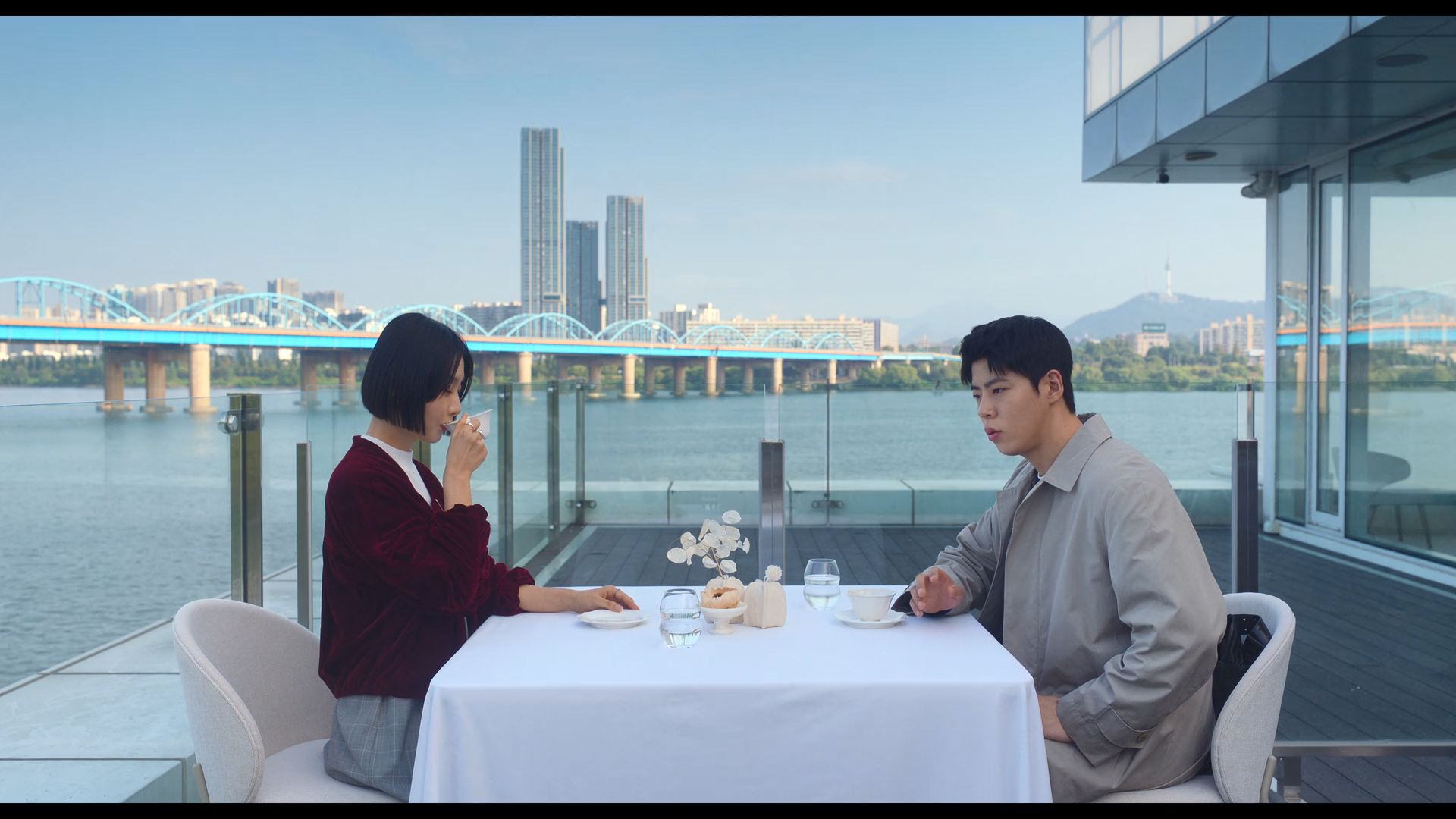 - 의미: 한국에 조용히 잠입한 히로를 무희가 만나 식사하는 장면, 덕분에 용우와 히로의 매니저인 나나미는 한강 뷰의 테이블에서 투샷