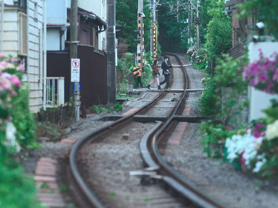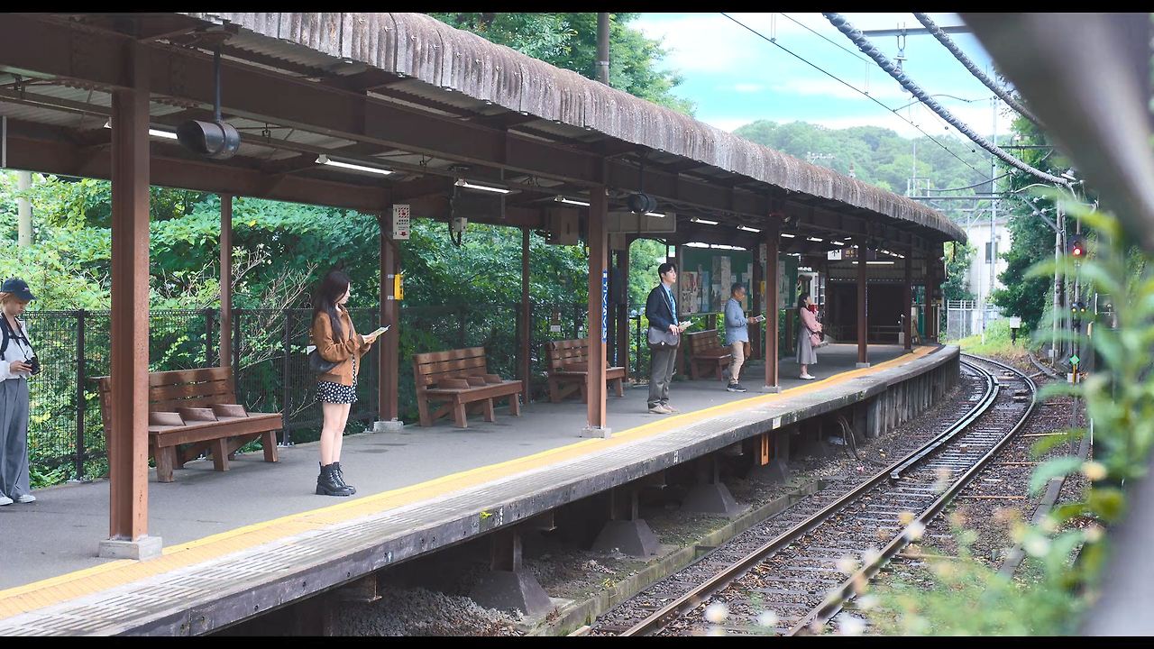 - 고쿠라쿠지 역: 에노덴 대기 장면