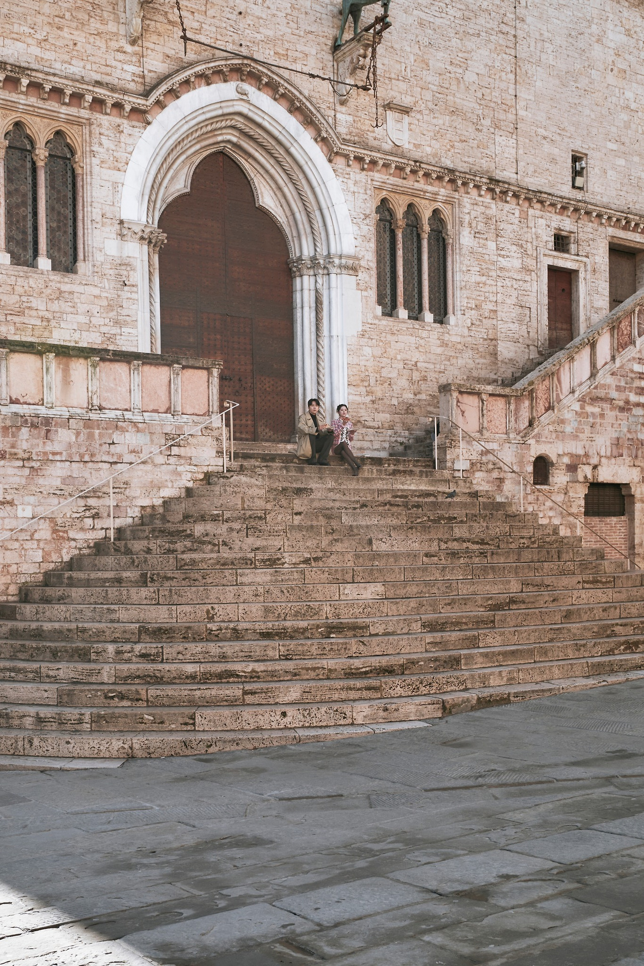 중세 도시 페루자의 중심 건축물은 화면에 담기는 순간 ‘유럽의 깊이’를 만들어 줍니다. 캐릭터가 장난스럽게 행동하더라도, 배경이 주는 무게감 덕분에 작품 전체의 톤이 유지됩니다.