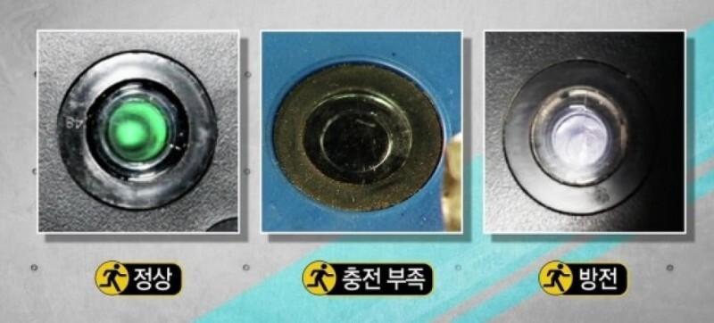 - 배터리 외관에 부풀음, 누액, 단자 부식이 확인되는 경우