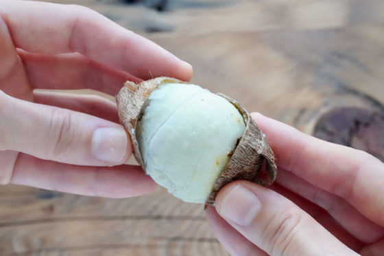 • 손으로 밀어내듯 껍질 제거