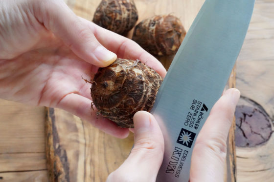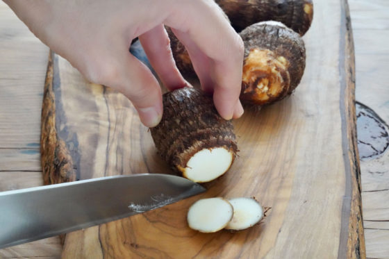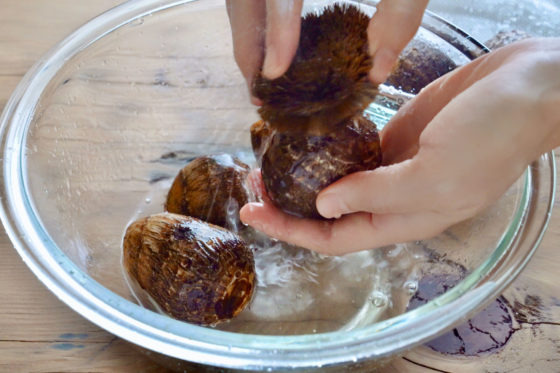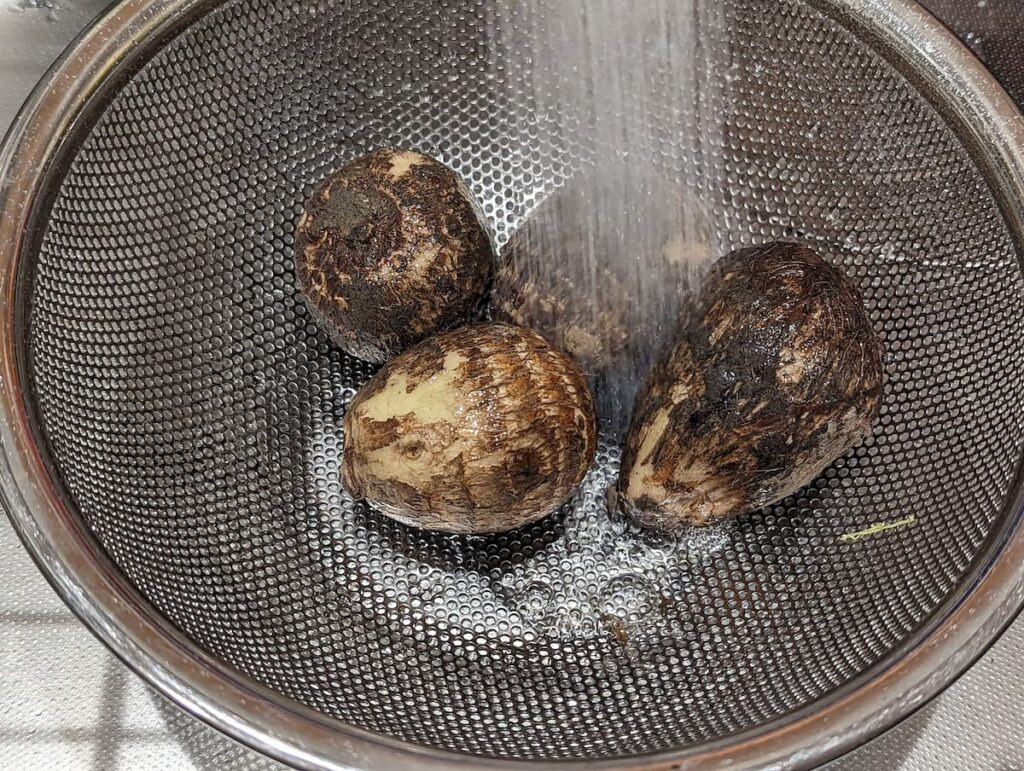 • 흐르는 물에 토란을 깨끗이 씻어 흙 제거