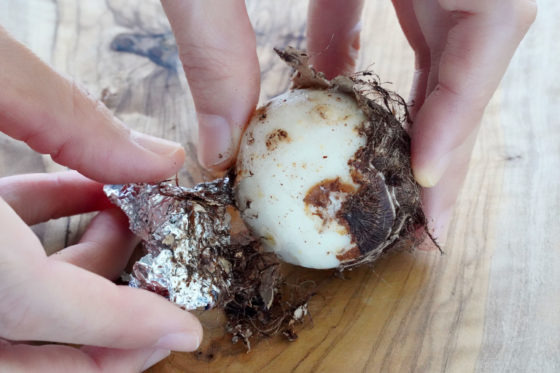알루미늄 호일 등을 사용한 토란 껍질 까는법
