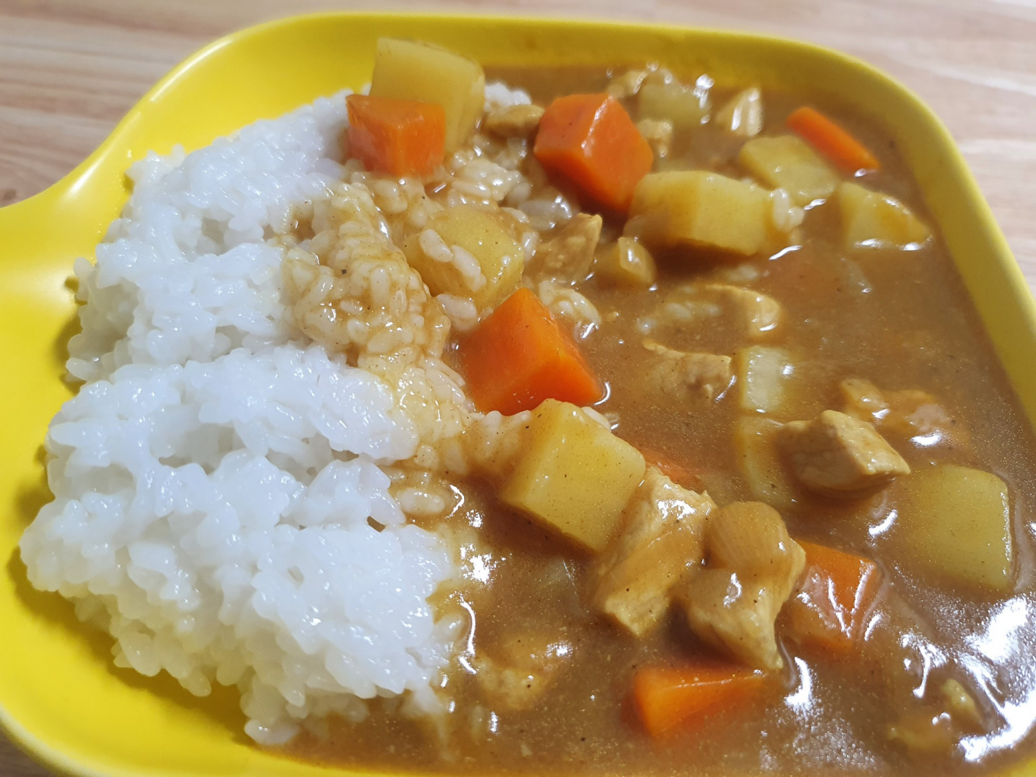 - 카레라이스 - 점성이 크고 농도가 높아 밥알에 들러붙는 느낌이 강합니다. 채소 큐브의 존재감이 살아 있습니다.