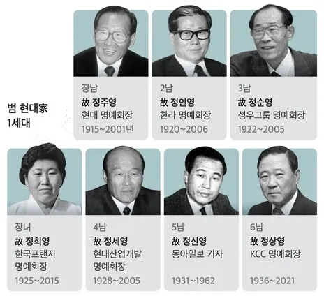현대가의 핵심 인물과 계열 관계를 이해하는 것이 중요합니다.