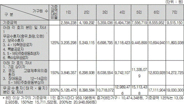 - 건국훈장 1-3등급 본인: 월 12,574천원